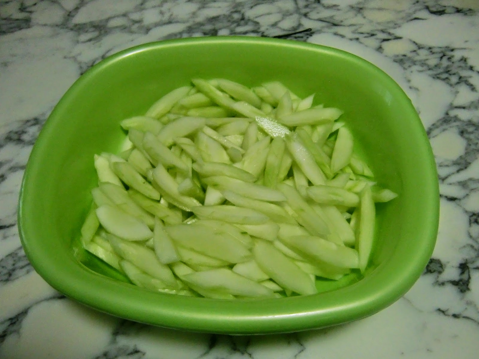 (这一次没买到四季豆和青椒,所以黄瓜和木瓜丝我加多250克)